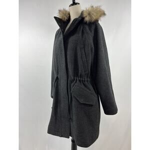 Madewell Vancouver Parka Coat Dark Grey Size XL Wool Blend Faux Fur Hood Pockets