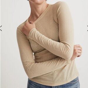 Madewell Variegated Ribbed Crewneck Long-Sleeve Tee - Color: Pale Lichen