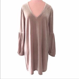 Madewell- Velvet Balloon Sleeve Blush Pink Shift Size Small Party Dress