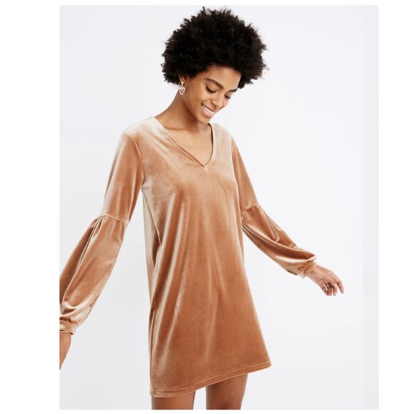 Madewell Velvet Balloon-Sleeve Dress in Burnt Sienna XS
