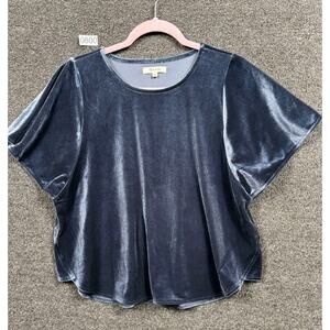Madewell Velvet Butterfly Top Womens Size M Deep Navy Short Sleeve Shirt Oversized