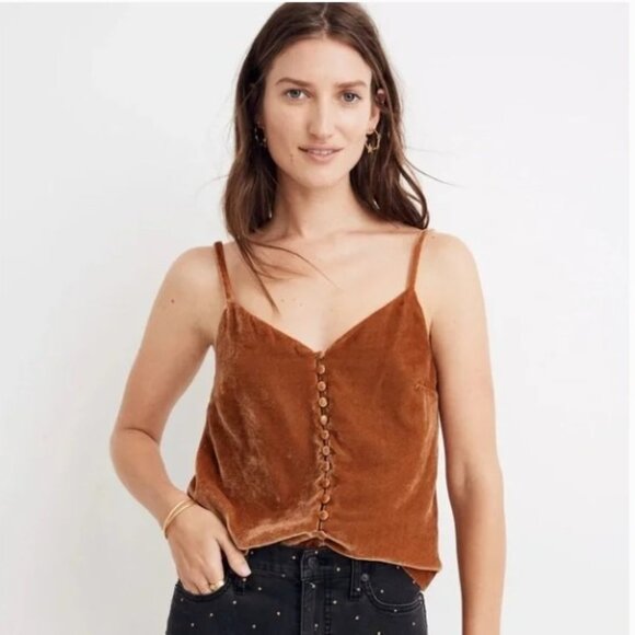 Madewell Velvet Button-Down Cami in Vintage Gold