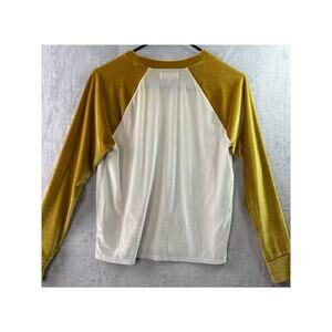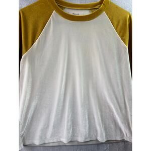 Madewell Velvet Pull-over Crewneck Baseball Tee – White/Gold – Size S