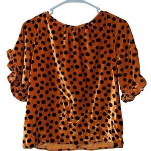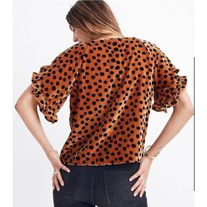 Keywords: Madewell, velvet top, polka dot blouse, ruffle sleeve top, brown velvet, retro top, womens blouse, casual top, party top, boho top, vintage style, bohemian, cute top