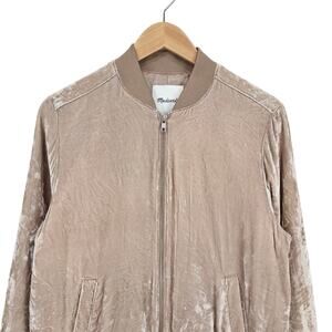 Madewell Velvet Silk Blend Full Zip Lined Bomber Jacket Tan Beige Size Medium