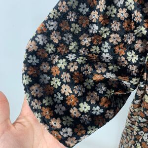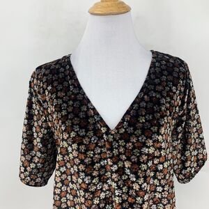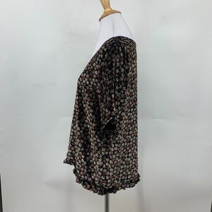 Madewell Velvet Tulip Sleeve Blouse Womens M Medium Black Multi Ruffle Trim Top