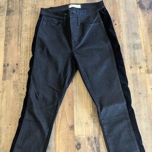 Lean and legs-for-days sexy, these perfectly faded black jeans are inset with party-ready velvet tuxedo stripes. The 9" rise has a supersleek effect, thanks to a tricky detail—Magic Pockets in front that offer an extra layer of holds-you-in sorcery for the slimmest, smoothest look yet (plus, a touch of added stretch ensures you're still totally comfortable).