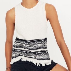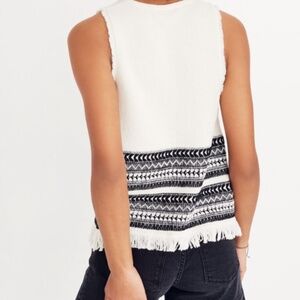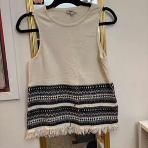 Madewell Villagrove Sweater Tank in Bright Ivory. Women's Knit Sweater Tank, black and white with fringed bottom, size medium. In excellent pre-owned condition.