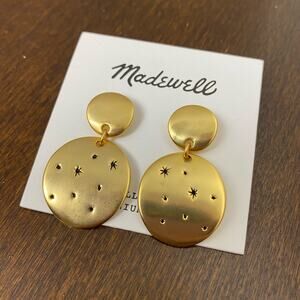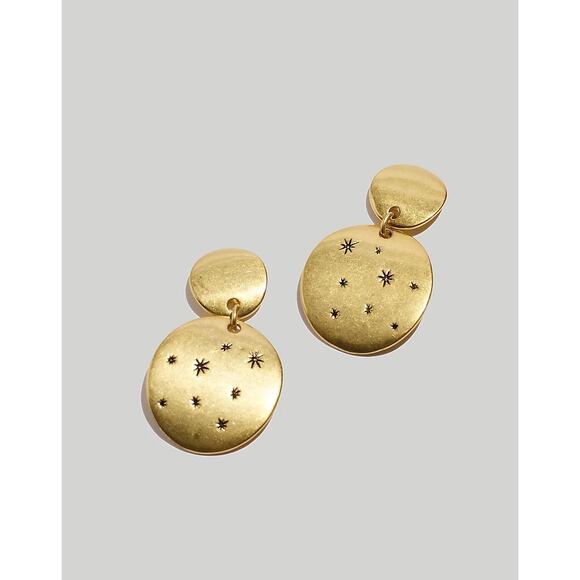 Madewell Vintage Gold Etched Stars Drop Earrings Atomic Starburst MCM NEW