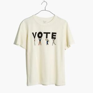 Madewell Vote Graphic Tomboy Short Sleeve Cream 100% Cotton Tee Shirt