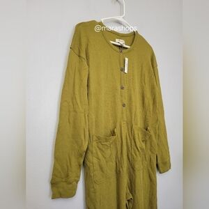 New to our get-comfy lineup, this button-front pajama one-piece is made of a superlight and cozy waffle knit fabric. Easy and relaxed, it has soft ribbed cuffs and pockets for stashing your phone or blue-light glasses.