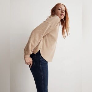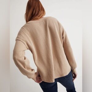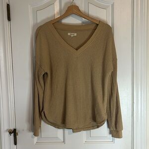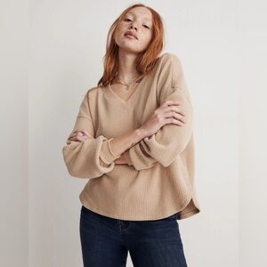 Madewell | Waffle Knit V-Neck Long-Sleeve Sweater Toasted Sesame XS Cozy Casual