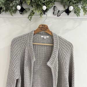 Madewell Waffle Stitch Grey Long Cardigan Sweater Small Pockets Open