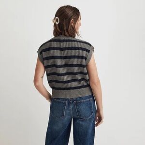 Coming in 100 percent cotton, this striped waffle-knit sweater vest has cap sleeves and ribbed trim. A true transitional piece, it can be layered when it's cool or worn as a top when it's warm.