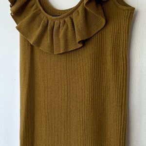 Madewell Ruffle Sweater Tank in Lichen Brown. Size XXS. Slim fit with ruffled front and back (as seen in photos). Worn once and from a petless, smokeless home.