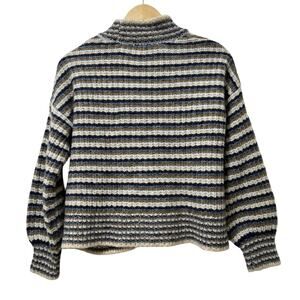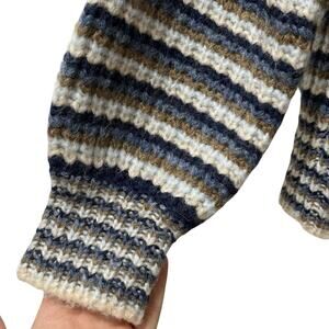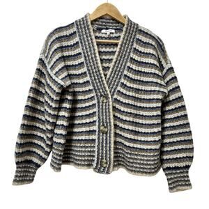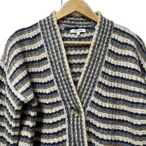 Madewell Waller Stripe Wool Blend Chunky Knit Cardigan Size XS Blue Preppy
