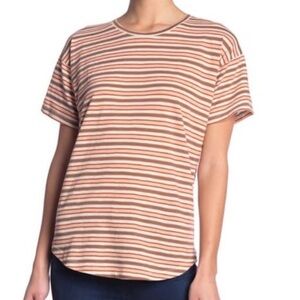 Madewell, Whisper, crewneck, short sleeve t-shirt. Cordoba stripe. Slight high/low rounded hem. 100% cotton. Size small. See photos for measurements to ensure fit.