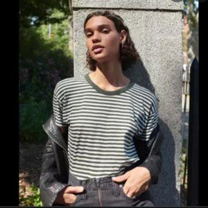 Forest green and white striped tee in perfect condition. Sold out online.