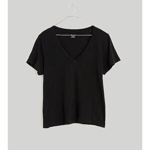 Madewell Whisper Cotton V Neck Tee Shirt Minimalist Basics Black Classic XXS NWT