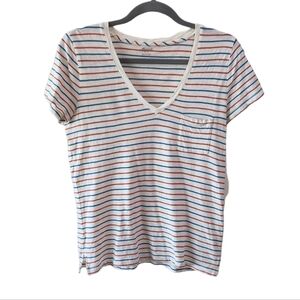 Madewell Whisper Cotton V-Neck Pocket Tee in Brion Stripe h7106 small