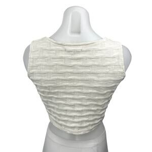 Madewell White Basketweave Stitch Sleeveless V-neck Button Crop Top Vest Size XXS