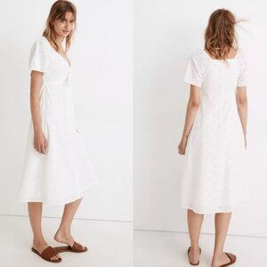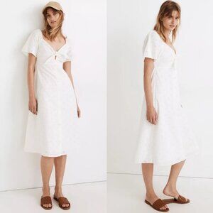 Madewell White Cotton Eyelet Embroidery Tie Front Keyhole A-line Midi Dress 2