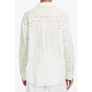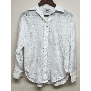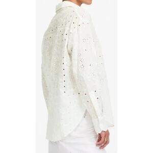 Add effortless polish to your wardrobe with this Madewell Embroidered Oversized Button-Up Shirt, brand-new with tags. Crafted from 100% cotton and detailed with all-over eyelet embroidery, this shirt blends classic tailoring with a feminine, elevated look.