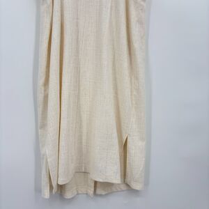 Chic white midi dress. Features black button details. Sleeveless design. Perfect for casual outings.
