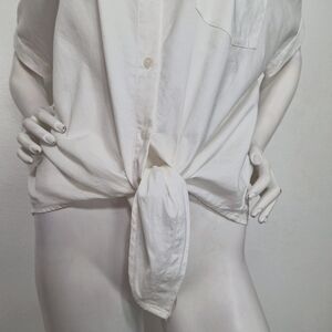 Madewell White Short Sleeve Tie Front Button Down Shirt Size M