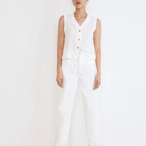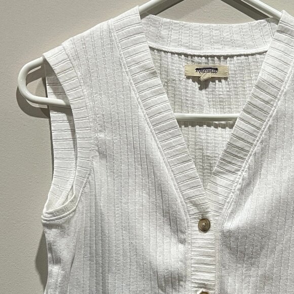 Madewell White Ribbed Knit Button-Up Vest (Size S)