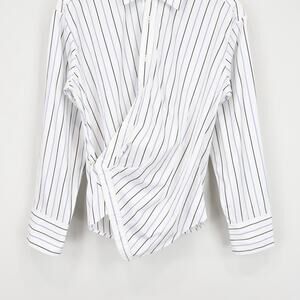 Stylish wrap design. Long sleeves with button cuffs. Classic collar. Perfect for casual wear.