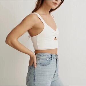 Super cute Madewell crop top in white, featuring a twist-front design with a keyhole cutout detail.
