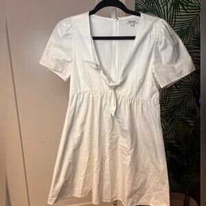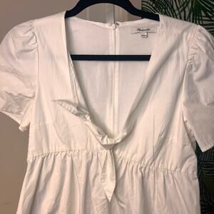A pretty poplin mini with a retro pitched waist and cute tie at the bust. There—a description short and sweet, just like this dress.