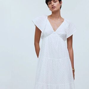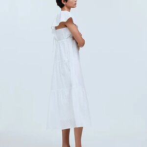 Madewell White Tie-Back Flutter-Sleeve Tiered Midi Dress NWT size 0