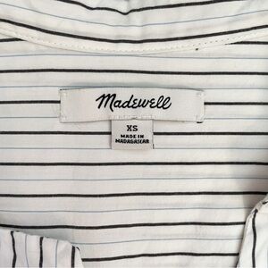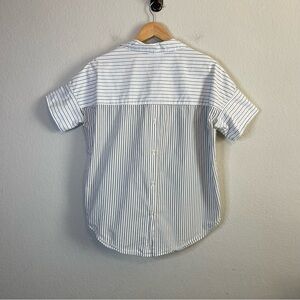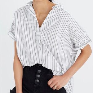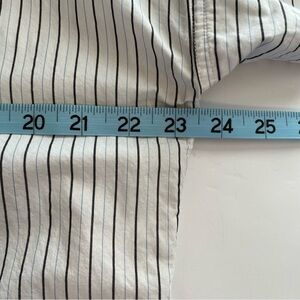 Stylish white top with black stripes. Features a relaxed fit and short sleeves. Perfect for casual wear.
