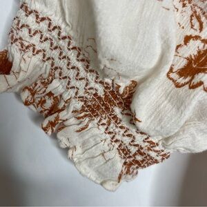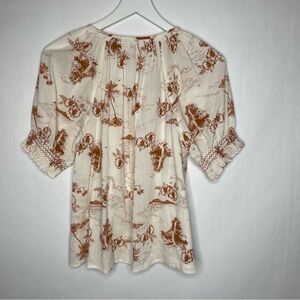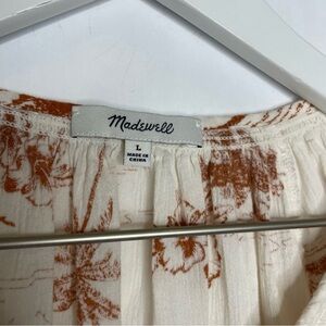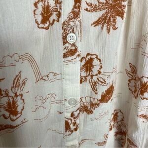 Madewell White and Brown Tropical Print Button Down Top