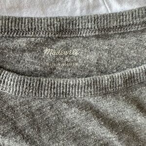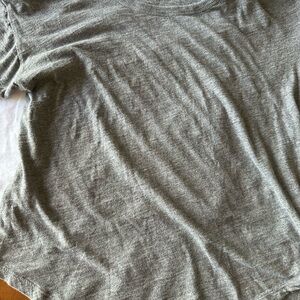 The gray tee is buttery soft and has wider sleeve caps. It’s super comfortable in a size small and isn’t fitted, it’s a little roomy.