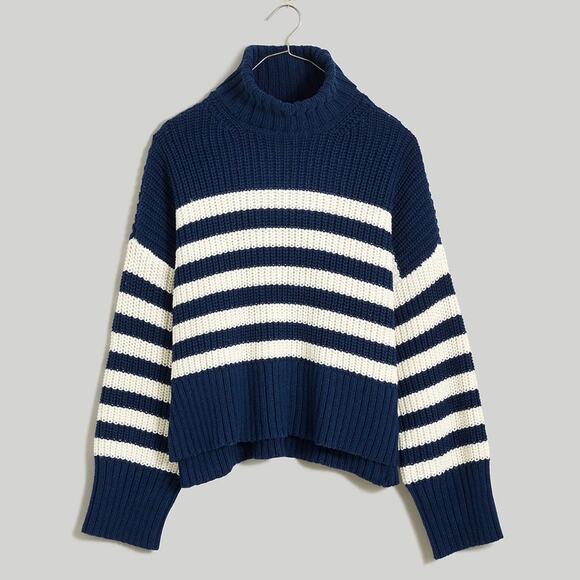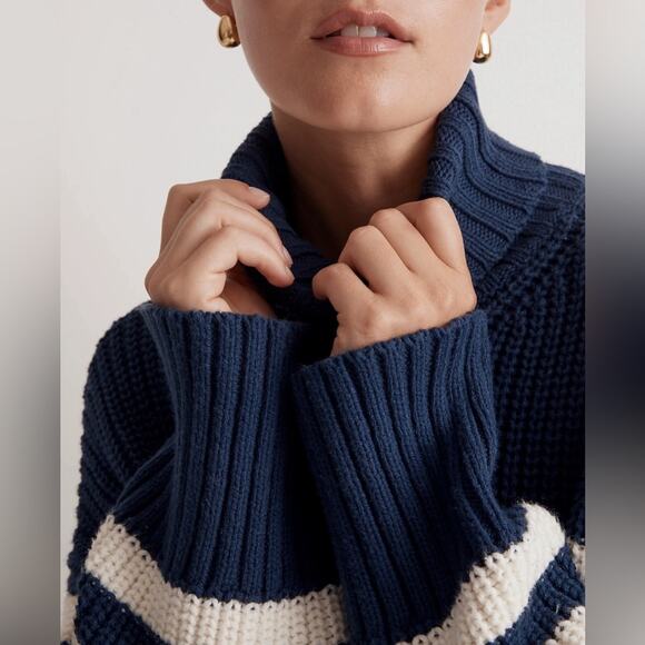 Madewell Wide Rib Turtleneck Sweater Navy and White Striped Women’s size XXS