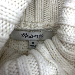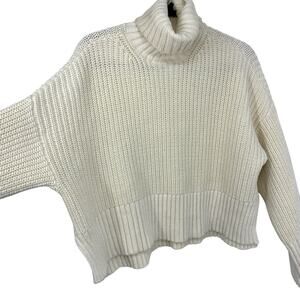 Madewell Wide Rib Turtleneck Sweater Women Size Medium Ivory Pullover Knit from a cotton-blend yarn, this wide-ribbed sweater has a turtleneck, drop shoulders and side-seam slits at the high-low hem.