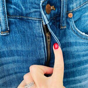 Condition: Pre-loved. Minor stretching by the zipper and distress on the left leg (see pictures)