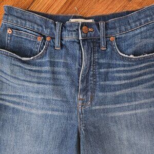 Per Madewell's website: Front rise: 10 1/2"; inseam: 25"; leg opening approximately: 22".