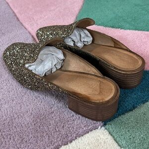 Madewell Willa Gold Glitter Heeled Loafer Mule Slip Ons