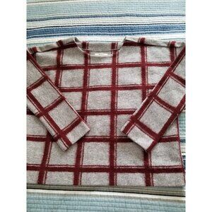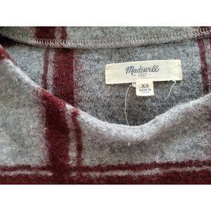 Madewell Windowpane Wool Blend Fleece Boxy Crop Sweater Top Gray Burgundy Sz XS