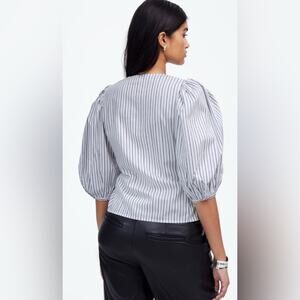 Madewell Wm’s Puff-Sleeve Button-Up Top in Blu/Wht Stripe size 10 #