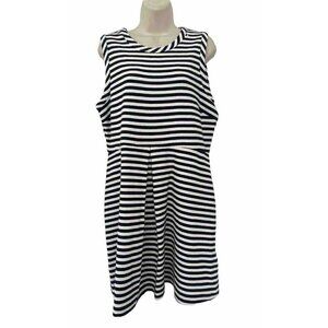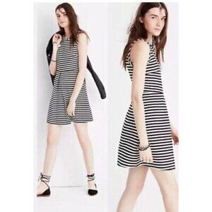 Madewell Striped Afternoon Dress. This is a black and ivory striped fit and flare skater dress. It's sleeveless with a scoop neck and bag zip. Dress is made of 100% cotton and is a woman's size XL. Dress is new with tags. Org. list price $98.