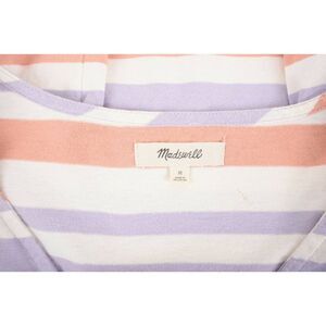 Madewell Womans Top Shirt Blouse Size M Peach Lavender Stripe Cotton. Ruffle, flare sleeve.