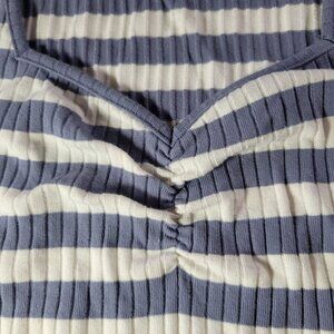 Madewell Women Cotton Blue & White Striped Ribbed Short Sleeve V-Neck Top XS