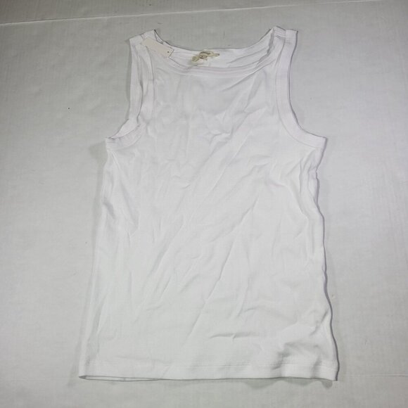 Madewell Women Cotton White Brightside High Neck Ribbed Tank Top Size S