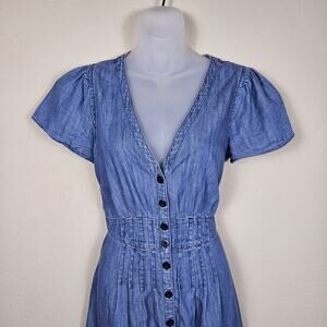 Madewell Women Denim Pleat-Waist Midi Shirt Dress Chambray Cottage Blue Button 6