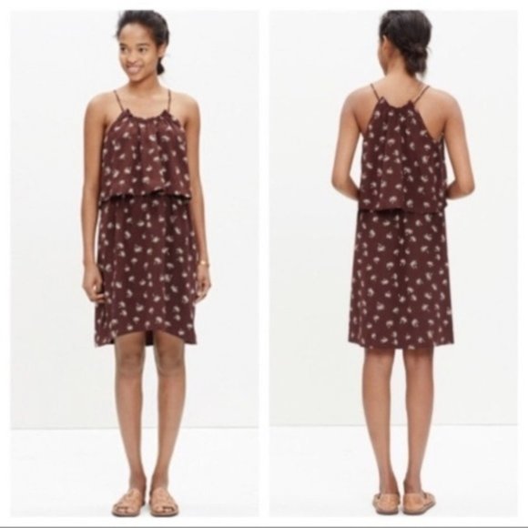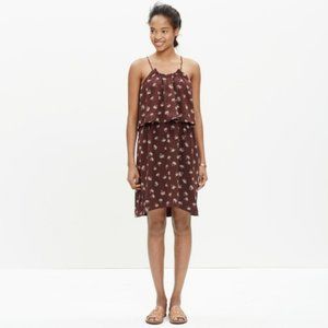 Madewell Women Dream Drift Overlay Palm Tree Dress Lined Brown 4 100% Silk C6315